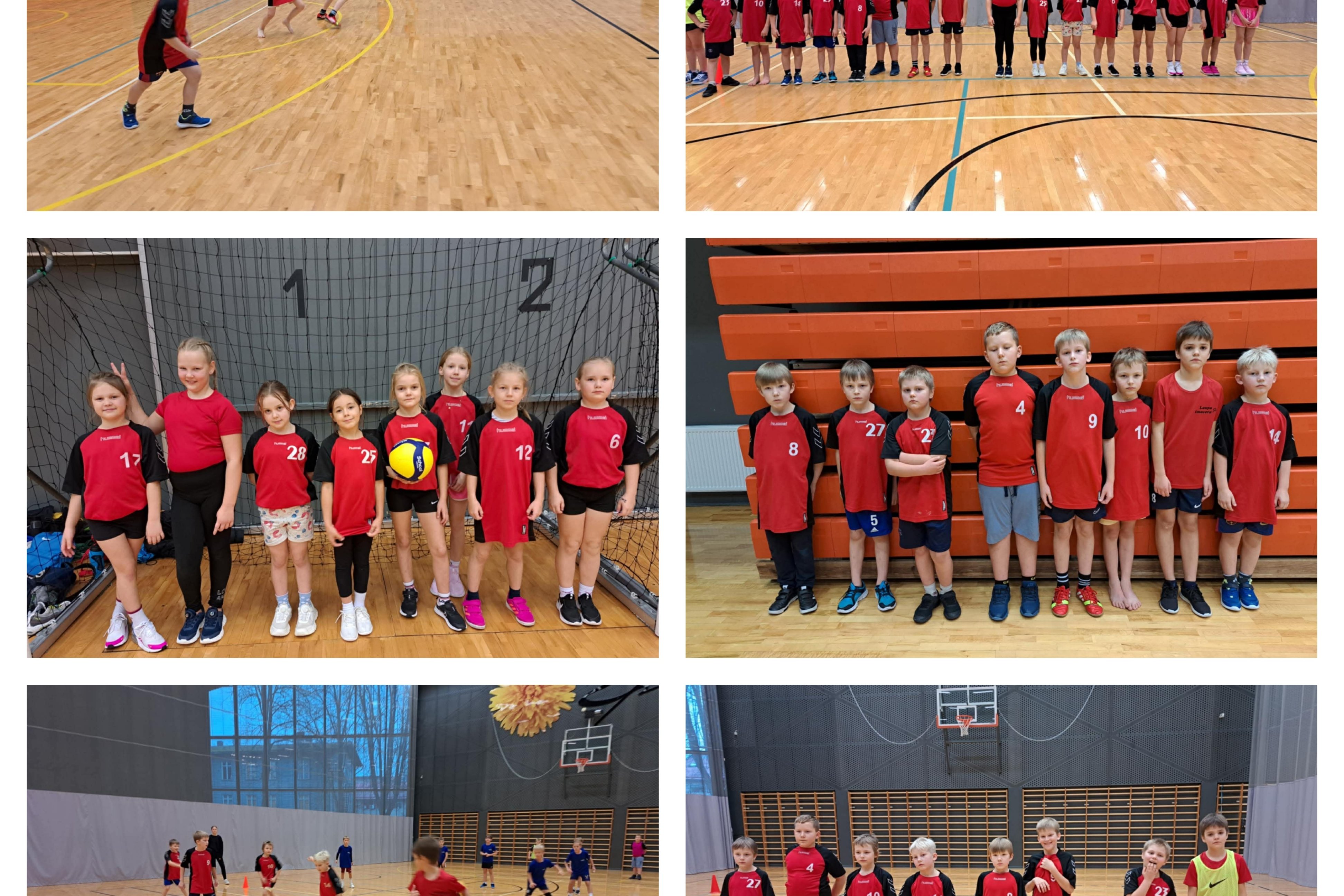 Koigi Kooli õpilased võrkpalli mängimas