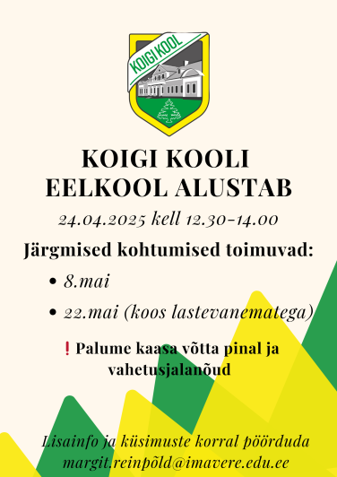 Asukoht Koigi Kool Õppetöö Ava foto Vaata rohkem sündmusi Ava foto Avaldatud 28.02.2025. Viimati muudetud 28.02.2025.