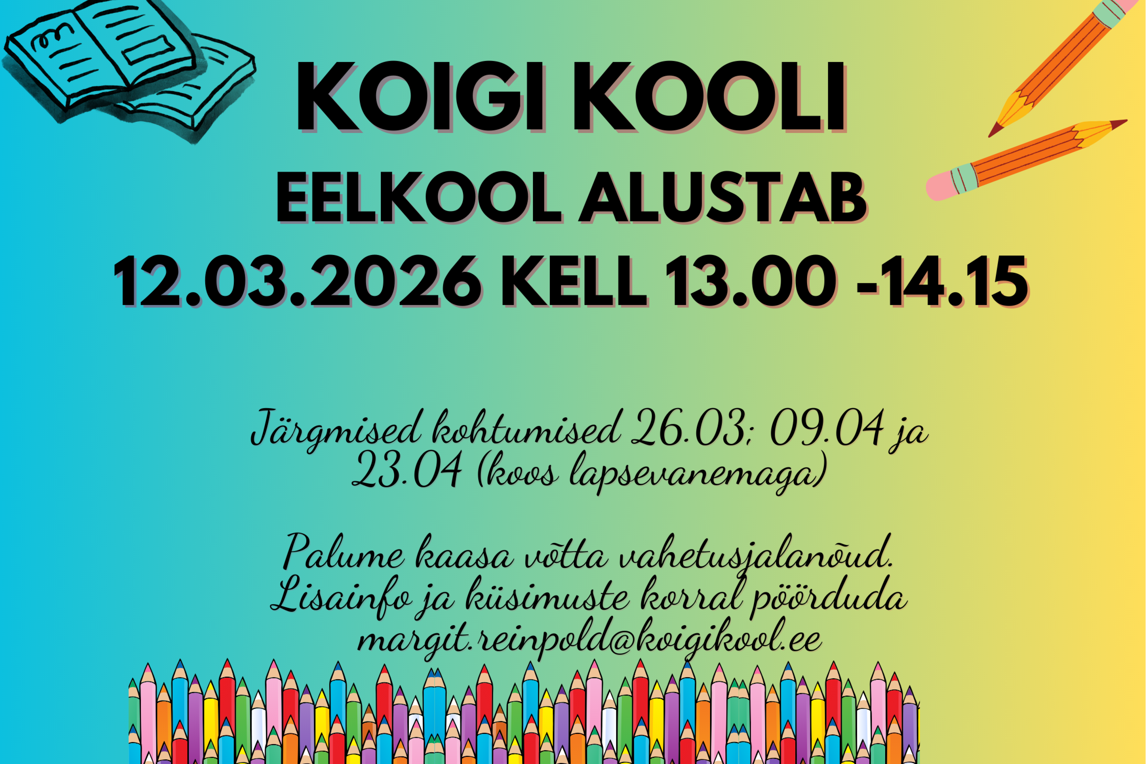 Koigi Kool ootab 1. klassi (2026/27 õa) tulijaid esimesele kohtumisele 12.03.2026.