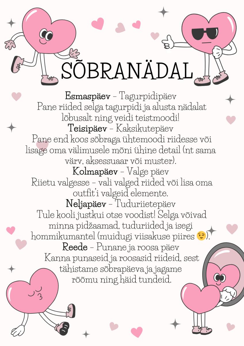 Koigi Koolis toimub sõbranädala raames igal päeval midagi põnevat.Oleme sõbralikud! Ava foto Viimati muudetud 05.02.2026.